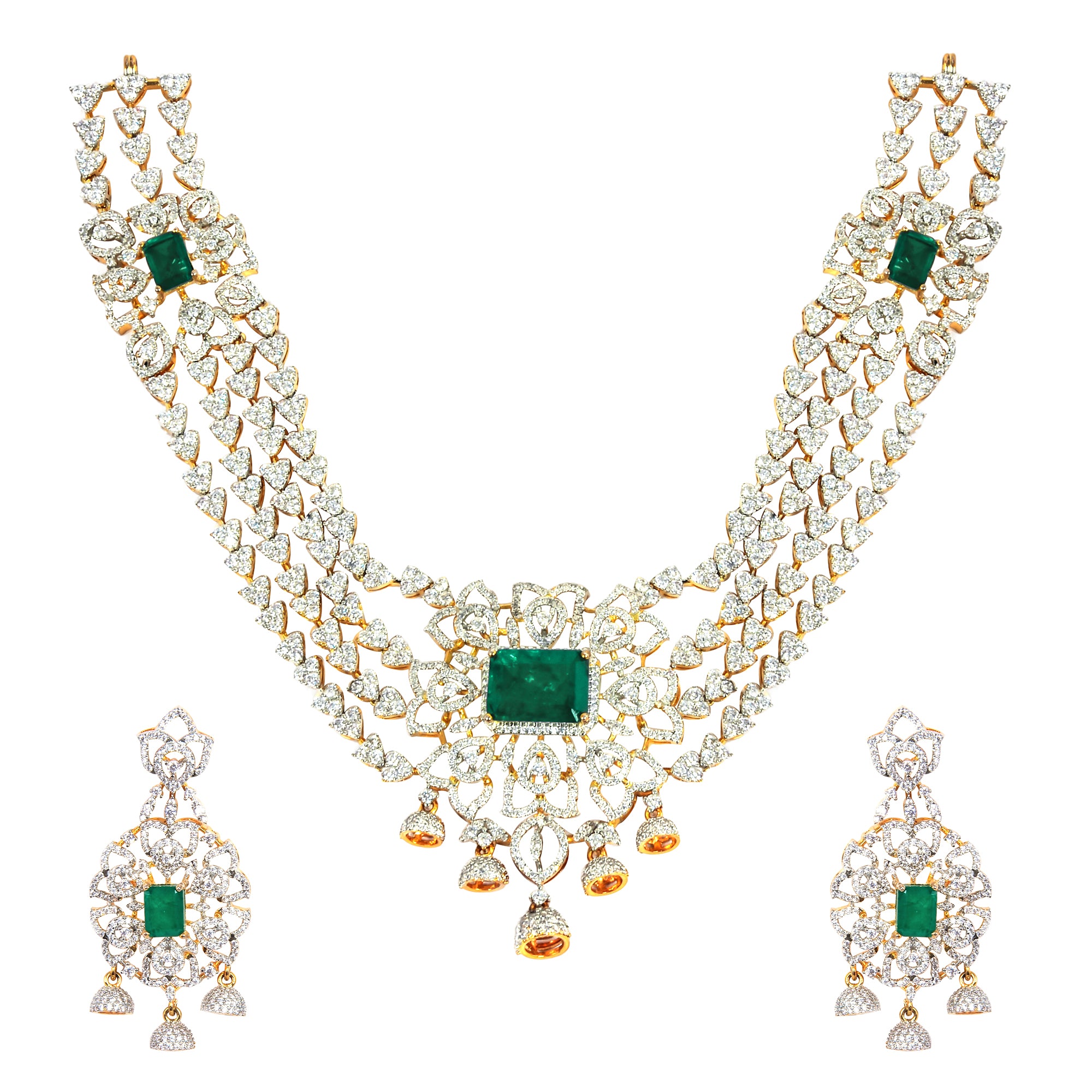 A crown of emerald radiance and intricate silver latticework — where heritage detailing meets aspirational elegance in full bloom.